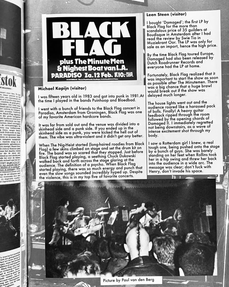 "This fanzine gives insight into the shows played by Black Flag in 1983 and 1984 in The Netherlands. It is filled with eyewitness reports by both attendees but also (local) promoters and artists.