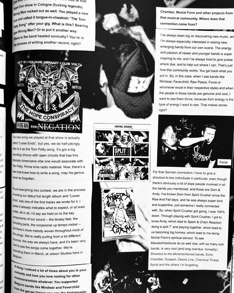 Interviews with the some of the minds behind Gratitude Fanzine, DBNO Records/Echo Chamber, Weightless, Force Of Denial, Face Your Fears and Wrong Man (not gonna name names), some record reviews and various write-up, rants and cool live photo spreads… it’s all in there and then some.