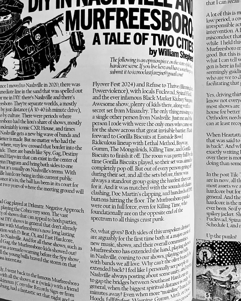 Building up on the vibe of the previous issue for this fanzine out of Nashville, still with that 90s feel revisited by way of 2025, both in terms of layout and content. Still with a strong focus on it’s local scene, as it should, but also broadening the spectrum a little bit.