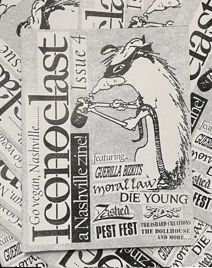 This one has interviews with Texas’ VSXE OG’s Die Young and Colorado’s Moral Law (sick band live btw), Arkansas’ Zashed and locals Aim Down Sight, plus the minds behind Pest Fest, as well as Guerilla Bizkits (vegan biscuits) and artist Thrashard Creations. Also has reviews and plenty of different articles about Inclusivity with the current scene, DIY scenes in Nashville and Murfreesboro and so much more. A complete and varied zine if you wanna get an overview of what’s happening around Tennessee and beyond.