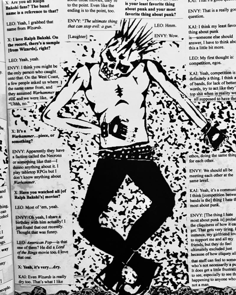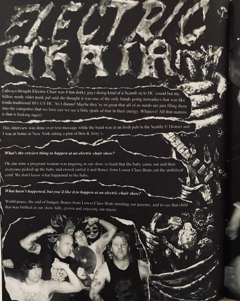 Nuzzy Zine is DIY punk fanzine. Inside is interviews with current HC punk bands Necron 9 & Electric Chair, a essay by NYHC legend Freddy Alva called “Reactionary NYHC in the 1980s - A Homophobic & Anti-Immigrant Playlist,” tons of art, punk pix, a full color poster insert and a sticker by notorious graffiti artist Cancer Carl.