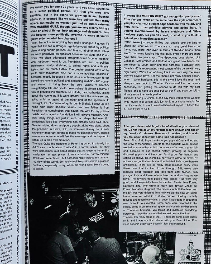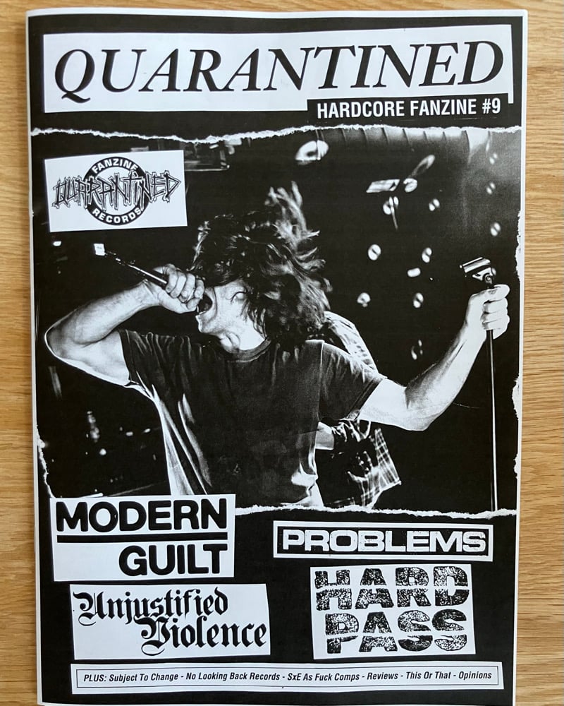 Interviews with Problems (that Beg For Release EP is sick), Hard Pass, Unjustified Violence, and obviously Modern Guilt. Plus all the extra usual stuff that makes Quarantined a cool zine: plenty of write-ups and deep dive about Swedish hc.