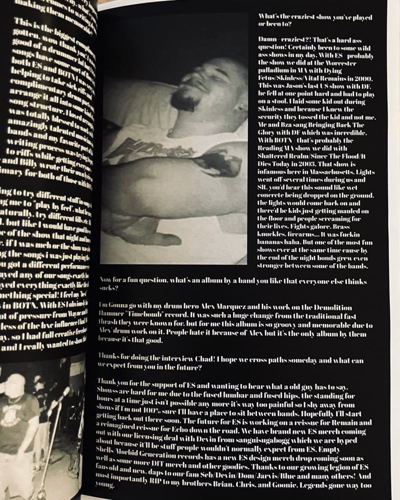 A new fanzine from Atlanta focusing on the Brutal stuff! There’s a sick interview with Chad Connell of Eternal Suffering and Back Of Tha Neck, a shorter one with local Andy Nguyen of Can’t Keep Up and Chophouse bookings, a bunch of write-ups about records/bands/movies (Pushbutton Warfare!) and that’s pretty much it. Short but sweet and def worth picking up if you’re into any slamming and pummeling.