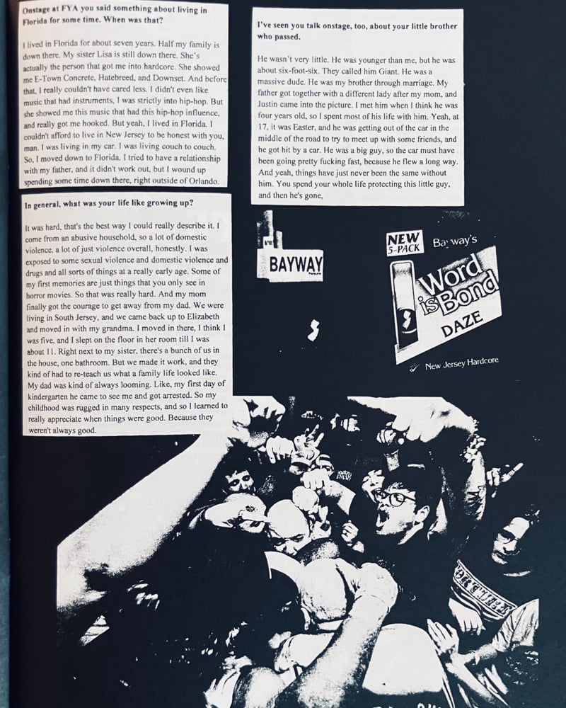 Jay Bayway talks about being able to show vulnerability even when playing hardass music, Geraldo of Si Dios Quiere about showing younger latino kids about hardcore, and him and the band solidifying their sound along the way, Damon of the Swirlies shares some insane anecdotes about the Boston HC scene of the early 80s and Harold of Vortex/Total Supply about his various musical endeavors, the Detroit and Chicago scenes, DIY Ethics and much more. Plus some live reviews, and a sick cut and paste layout to boot. Truely a must have.