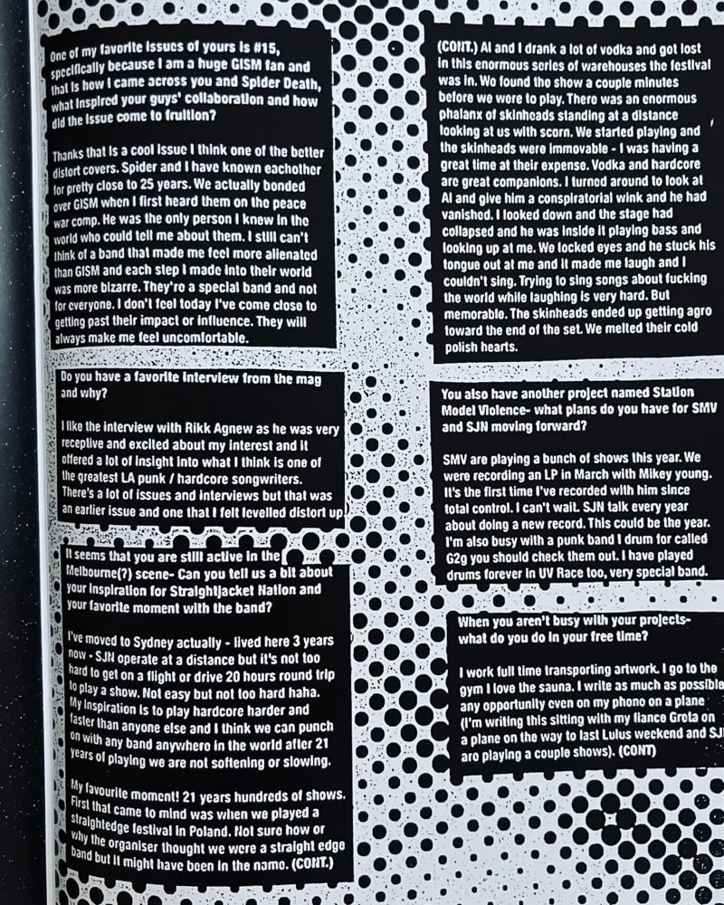 Focusing on both Australian and Japanese hardcore, there's interviews with DX of Distort Fanzine/Straight Jacket Nation and tatooer Spider Death, as well as some cool write-ups about G.I.S.M and more. A strong offering from Stephanie with it's own vibe, especially the layout shines, plenty for the eyes to catch on.